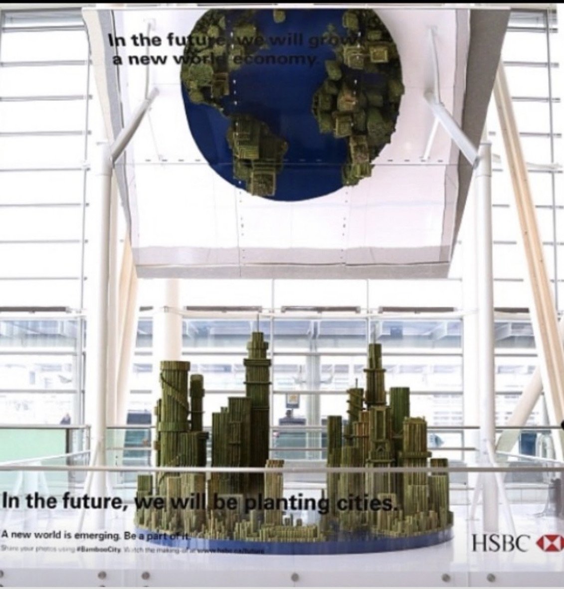 Some of the most noteworthy installations include HSBC ‘Bamboo City’ at the Toronto international airport. It was fabricated with Jaded Eye Design to give awareness of sustainability on the global platform. We created a ‘leopard sky’ installation for Sheila Klein at the Intercontinental Airport in Houston, Texas. Another large installation was for Dwell on Design, a home furnishings/interior design trade fair at the Los Angeles Convention Center. I was the featured artist, creating digital life size cityscapes, and then with a team, painted live over the realistic street scenes. We drew a huge crowd to observe the backdrops morphing with our live painting!