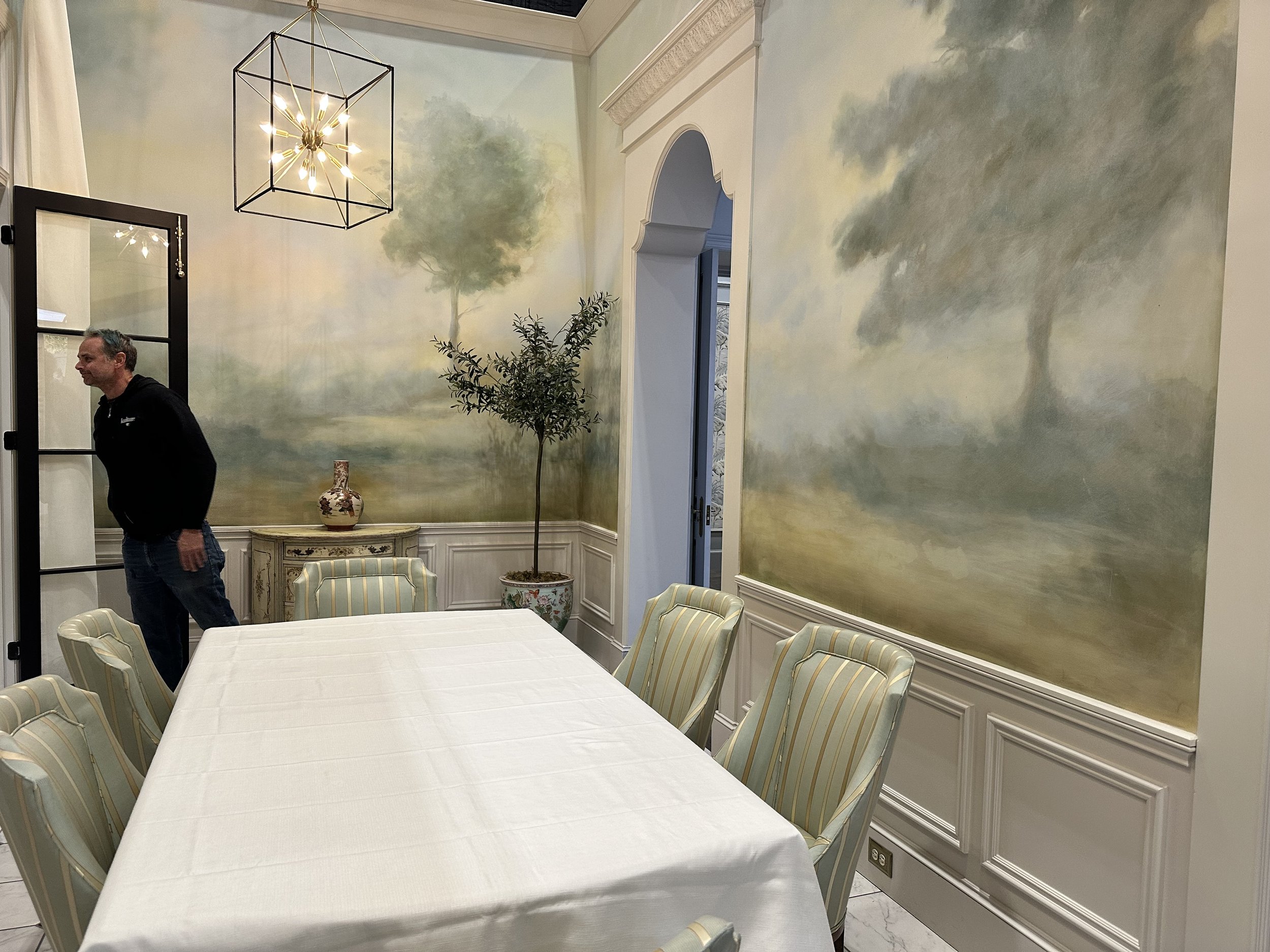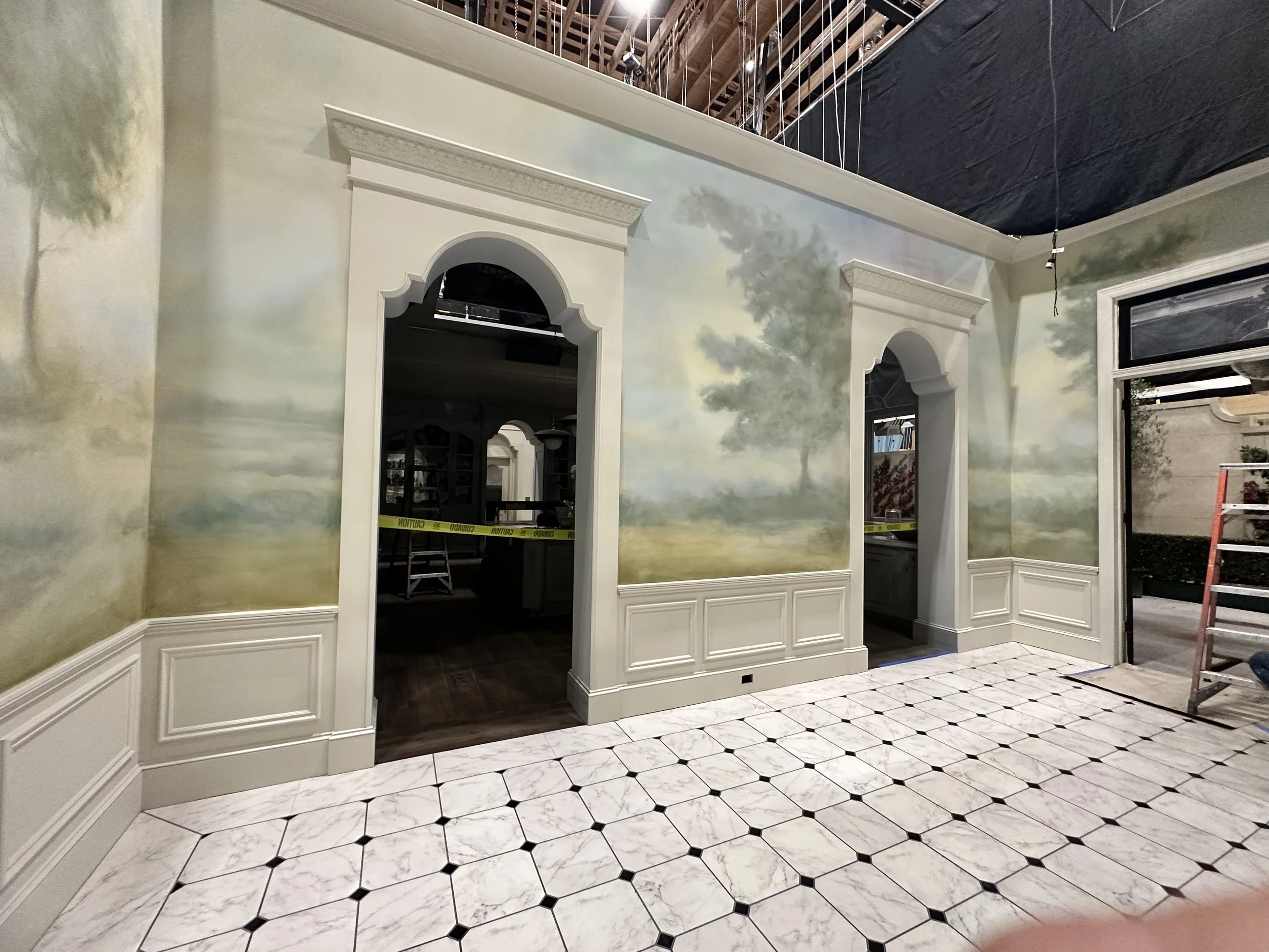 I have painted more murals than I can remember over my career, both public art and privately commissioned artwork. My first was for a junior high school in Los Angeles. The largest was the Venetian Casino in Macau, SAR, China. It was for the sky ceilings throughout the canal shops. It was created through Skydrops and Karen Kristin, totaling 7.5 acres of painted scenery. My favorite, however, was the Uptown Theater in Napa, California. It was a complete restoration circa Art Co 1936. My most recent was in the mid-city Pico Union area in Los Angeles. It was created as a set piece for the TV series Roar.
