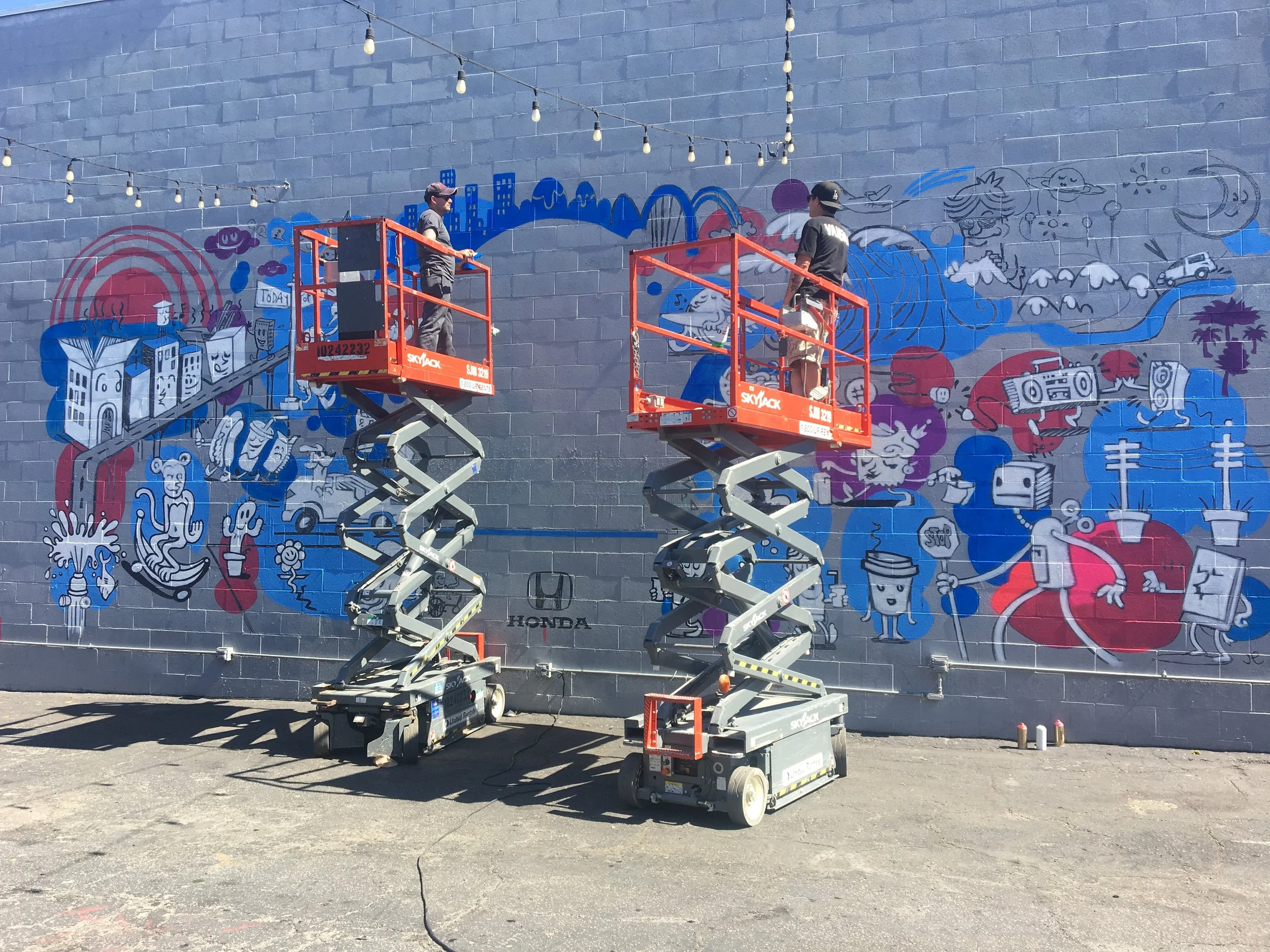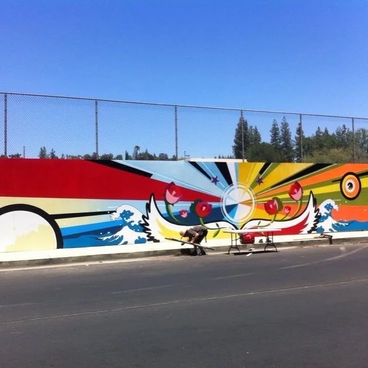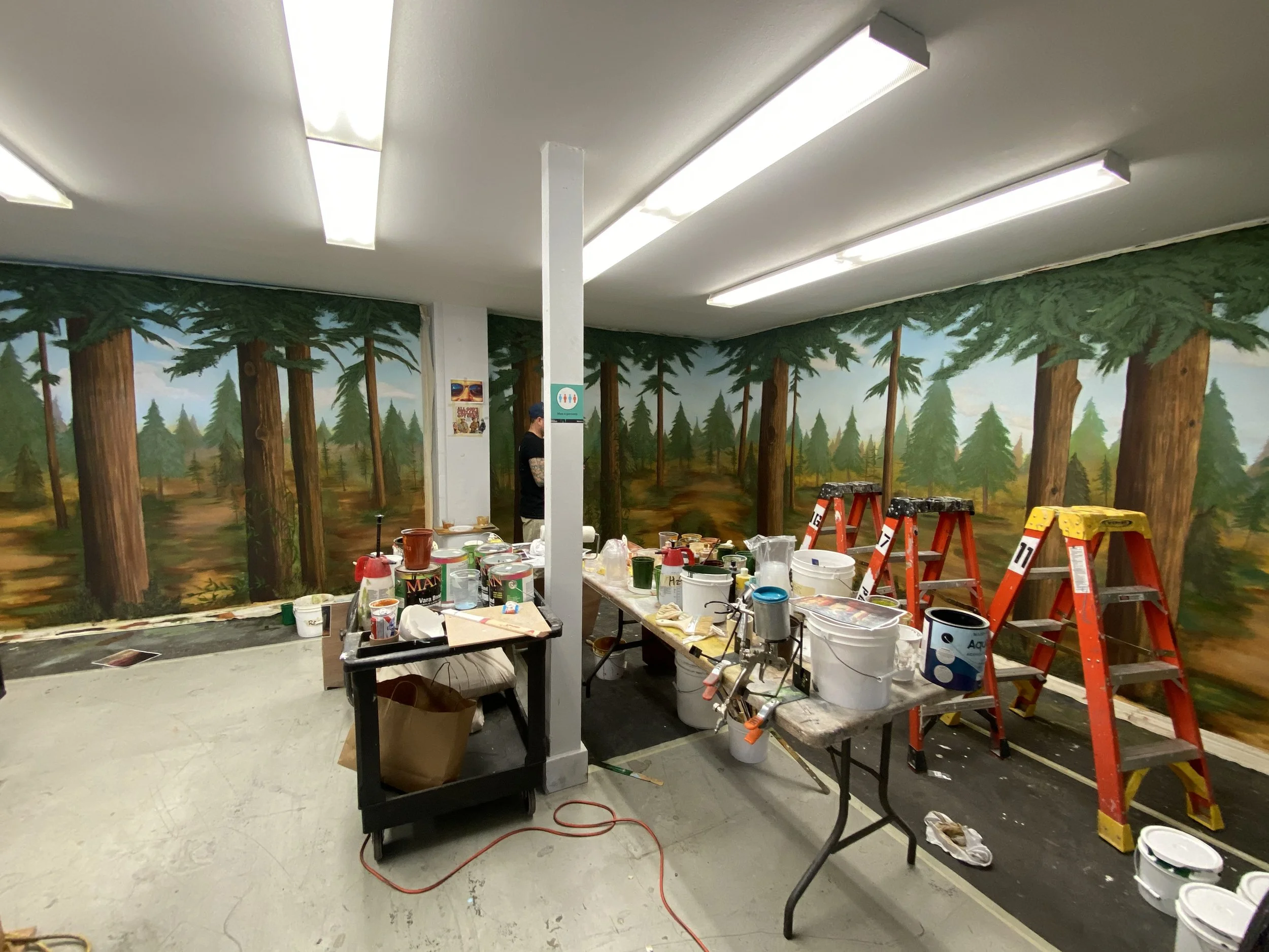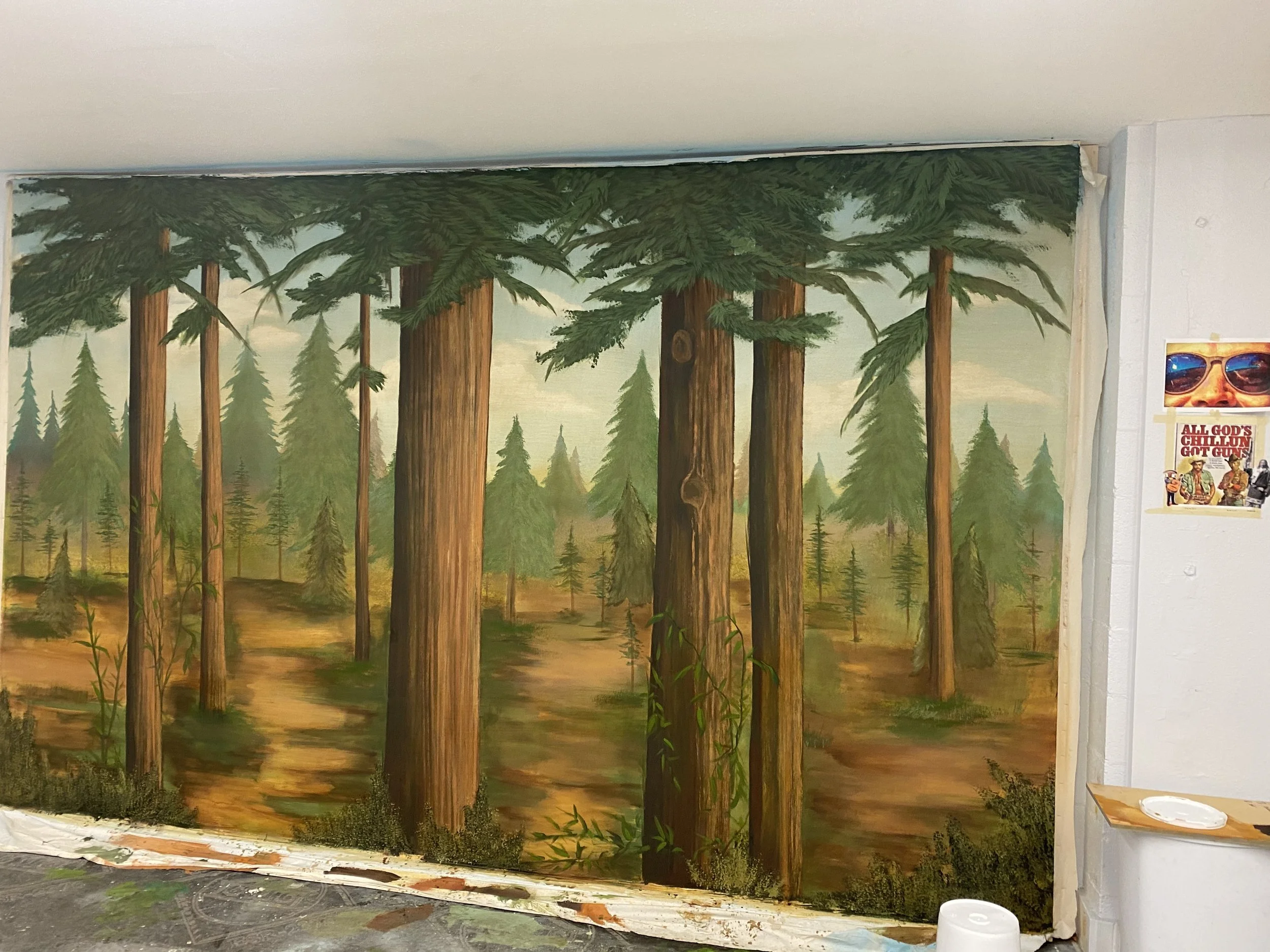 I am a quick learner and started creating murals just by observing and then following the lead of my mentors Gary Lloyd, Dave Barsky, Karen Kristen, and Philip Slagter. Through them I learned how to paint big. I quickly became known in the industry for producing high quality, large-scale murals in a short period of time. My main arena for a while was producing sets for music videos. I paint in a large variety of styles, from large-scale movie backdrops to full buildings and movie sets.