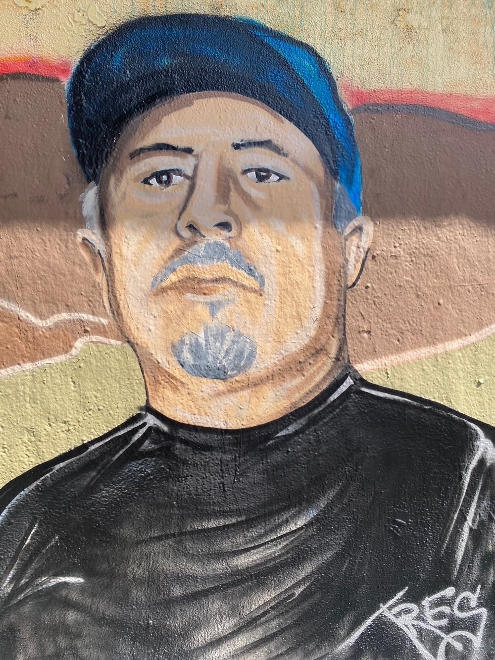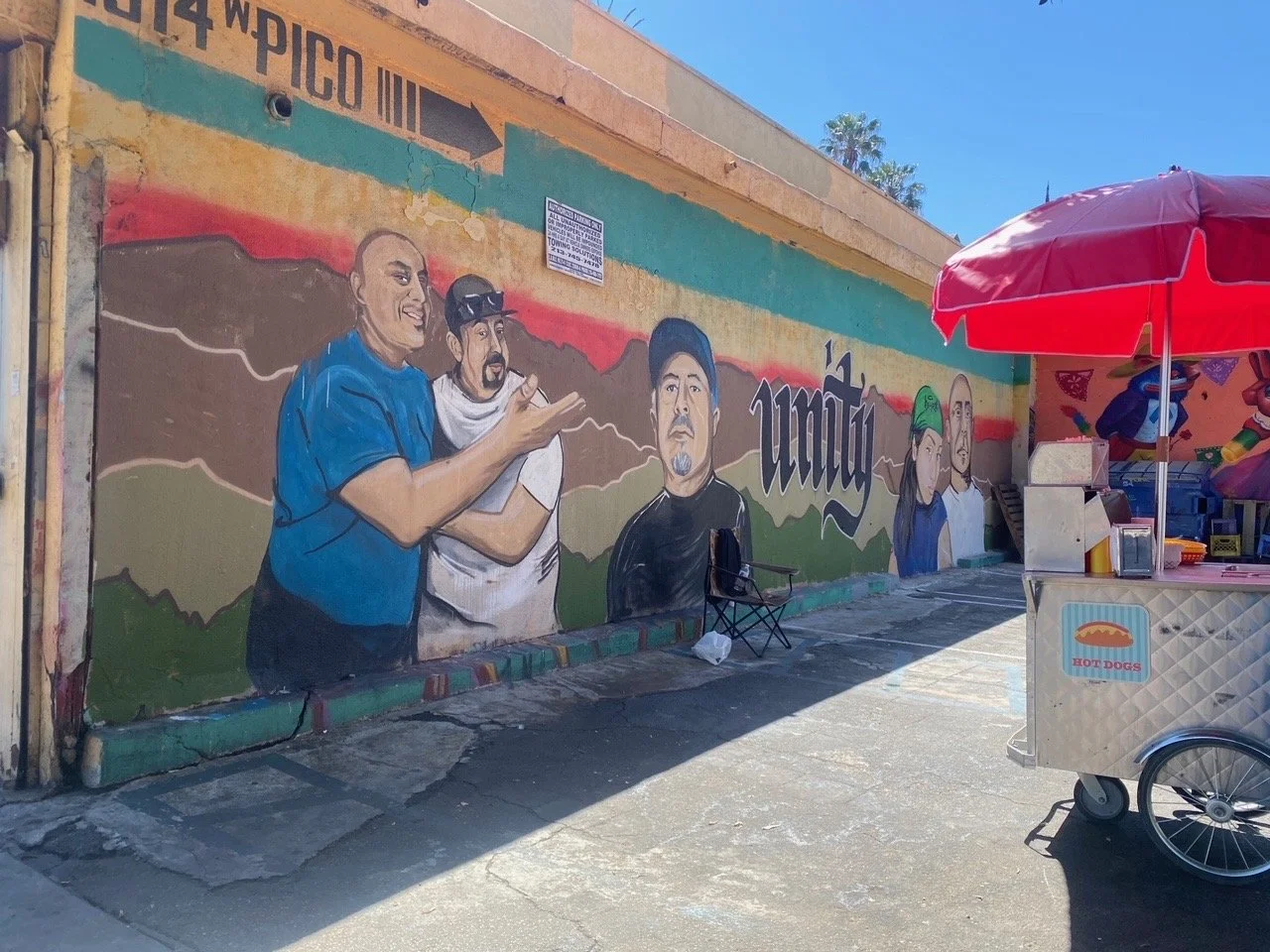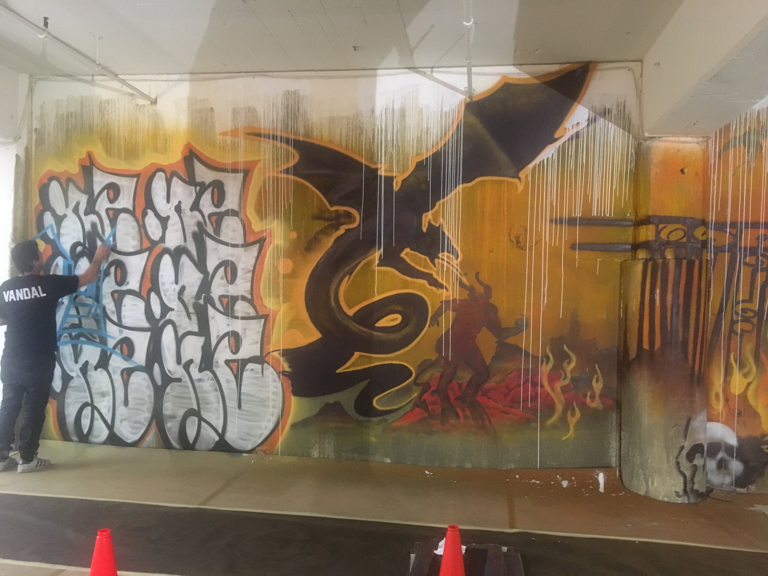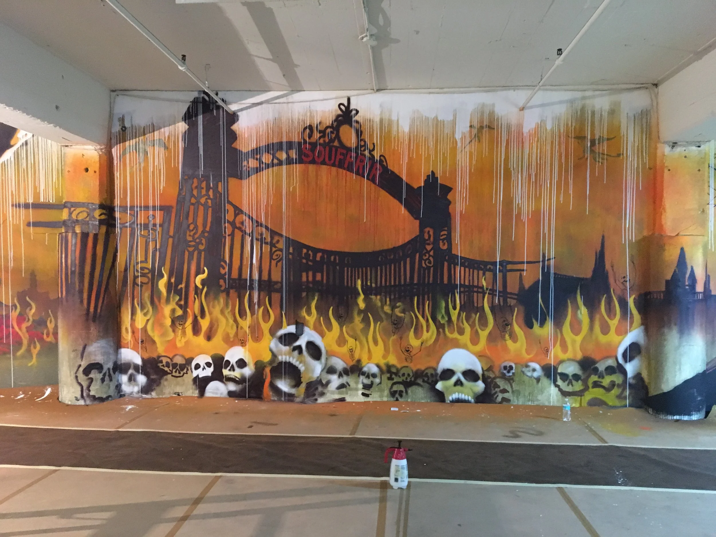 I am a quick learner and started creating murals just by observing and then following the lead of my mentors Gary Lloyd, Dave Barsky, Karen Kristen, and Philip Slagter. Through them I learned how to paint big. I quickly became known in the industry for producing high quality, large-scale murals in a short period of time. My main arena for a while was producing sets for music videos. I paint in a large variety of styles, from large-scale movie backdrops to full buildings and movie sets.
